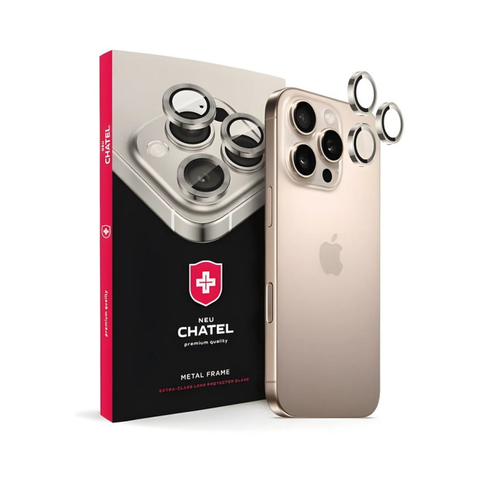 Захисне скло камери +NEU Chatel Metal Frame створене для надійного захисту модуля камери вашого Apple iPhone 15 Pro. Воно рятує від подряпин, сколів і ударів, зберігаючи якість зйомки та зовнішній вигляд смартфона.